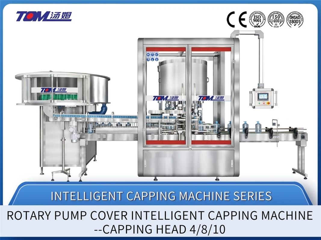 Mengintegrasikan inlet botol, mengangkat tutup, pembagian tutup, makan tutup, penekanan tutup dan outlet botol, mengadopsi tutup pegangan dan posisi capping,menyelesaikan proses capping waktu dengan botol bergerak;