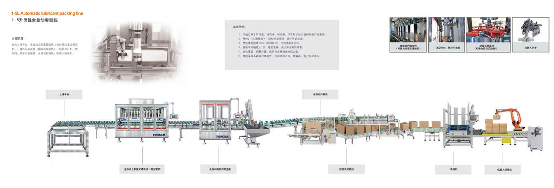 Benar.Lubricant Filling Packaging Line dirancang khusus untuk pengisian pelumas, termasuk botol masuk, pengisian, penutup, penguncian induksi, pelabelan, karton terbuka, pengemasan,Penutup karton dan pengemasan robot.